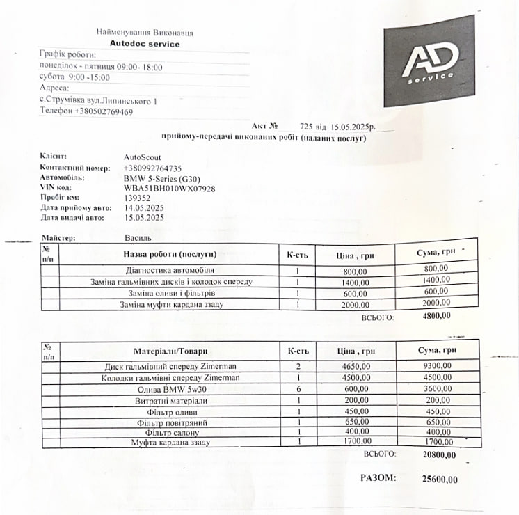 Офіційна історія обслуговування на дилері BMW, останній заїзд фіксується на 134 534 км, 01.25. В Україні зроблено повне свіже обслуговування!